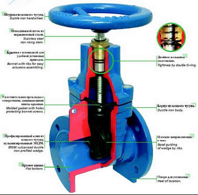 Обрезиненный клин задвижек Tecofi DN 100 PN 10/16 обеспечивает нормальное функционирование данного вида задвижек даже при значительных температурных колебаниях. Кроме того, задвижки с обрезиненным клином имеют достаточно низкие крутящие моменты управления. Достоинство задвижек с обрезиненным клином – высокая ремонтопригодность. Ремонтировать этот вид задвижек и менять некоторые их элементы можно без снятия задвижки с трубопровода.
