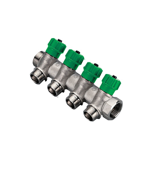 Коллектор регулируемый 3/4 с отводами 1/2(16) (никель) 4 отвода