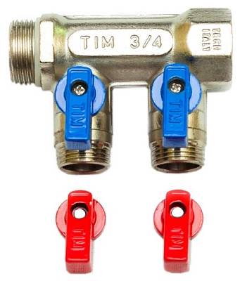 ПодробнееКоллектор TIM с шаровыми кранами 3/4x1/2 на 2 выхода поставляется в комплекте с красными и синими ручками.