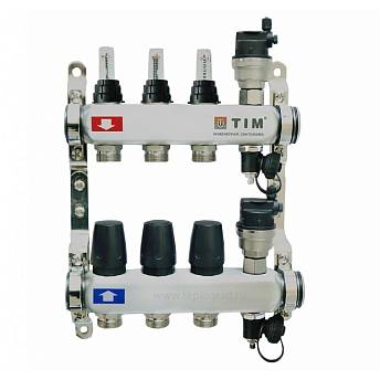 ПодробнееКоллектор TIM на 3 выхода из нержавеющей стали с расходомерами (артикул: KCS5003) применяется в напольных системах отопления для распределения и регулирования теплоносителя.