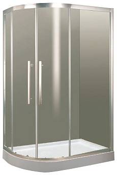 Акриловый асимметричный поддон с сифоном и усиленным каркасом Анодированный, алюминивый, хромированный профиль. Закалённое ударопрочное прозрачное стекло толщиной 6 мм Двойные ролики Магнитный уплотнитель на алюминиевом профиле. Ручки.