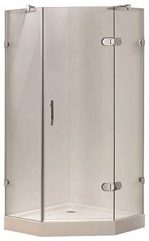 Акриловый пятиугольный поддон с сифоном и усиленным каркасом.