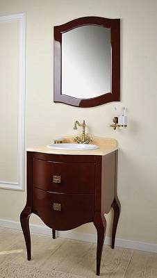 Технические характеристики и описание мебели: напольная тумба под раковину 2 выдвижных ящика столешница: мрамор, крема нова мраморный плинтус керамическая раковина Roca Foro материал: МДФ крашеный ножки: массив дуба цвет: бордо Дополнительно можно приобрести: столешница: черный гранит, мрамор (цвет на выбор) зеркало, 600х790 мм пенал, 465х445х1820 мм смеситель донный клапан