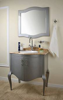 Технические характеристики и описание мебели: напольная тумба под раковину 2 распашные дверцы столешница: мрамор, имперадор лайт мраморный плинтус керамическая раковина Roca Foro материал: МДФ крашеный ножки: массив дуба цвет: серый Дополнительно можно приобрести: столешница: черный гранит, мрамор (цвет на выбор) зеркало, 800х790 мм пенал, 465х445х1820 мм смеситель донный клапан
