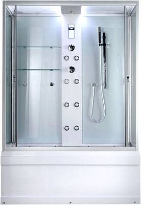 Закаленное ударопрочное безопасное стекло толщиной 6мм. Стеклянные задние стенки бело-серебристого оттенка. Раздвижные стеклянные двери толщиной 6 мм с откатным механизом. Металические, бесшумные роллики. Сенсорный пульт управления. FM-радио, верхняя подсветка (светодиодные ленты), вентиляция, BLUETOOTH.