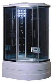 Акриловый поддон h - 48 см. Съемный экран. Сливная система clik-clak с сифоном. Анодированный алюминиевый профиль (матовый хром). Закаленное ударопрочное безопасное стекло толщиной 5 мм. Сенсорный пульт управления. Подсветка верхняя и боковая. FM-радио. Вентиляция. Смеситель однорычажный - четыре режима. Тропический душ. Лейка. Массажер ступней. Гидромассаж спины 6 джет. Двойные ролики. Стеклянная полочка. Диспенсер. Ручки. Одна дверь!