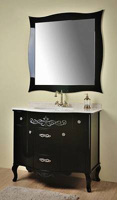 Технические характеристики и описание мебели: напольная тумба под раковину 2 распашные дверцы 4 выдвижных ящика столешница: мрамор, крема нова мраморный плинтус керамическая раковина Roca Berna материал: МДФ крашеный ножки: массив дуба цвет: черный Дополнительно можно приобрести: столешница: черный гранит, мрамор (цвет на выбор) зеркало, 1000х1000 мм пенал, 500х420х1800 мм смеситель донный клапан