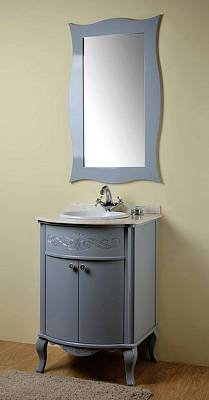 Технические характеристики и описание мебели: напольная тумба под раковину 2 распашные дверцы столешница: мрамор, крема нова мраморный плинтус керамическая раковина Roca Foro материал: МДФ крашеный ножки: массив дуба цвет: серый Дополнительно можно приобрести: столешница: черный гранит, мрамор (цвет на выбор) зеркало, 600х1000 мм пенал, 500х420х1800 мм смеситель донный клапан