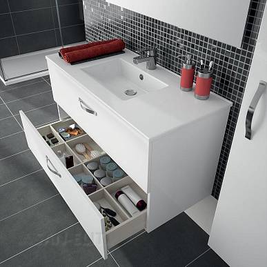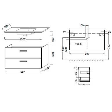 Подвесной шкаф Ola. для раковины Ola EXU112-00 два выдвижных ящика оригинальные волнообразные ручки текстурное покрытие цвет: темный дуб.