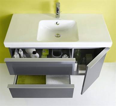 Тумба под раковину 102х48,5х53 Jacob Delafon Odeon Up EB891-N18, белый ламинат Два ящика друг над другом с механизмом «плавное открывание» Одно отделение справа Полупрозрачный контейнер изнутри полки сверху Рекомендуемые смесители: Aleo - широкий и стильный ассортимент В качестве опции: ножки H30.5 см EB889 Лаковое покрытие недоступно для этой коллекции