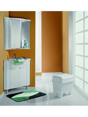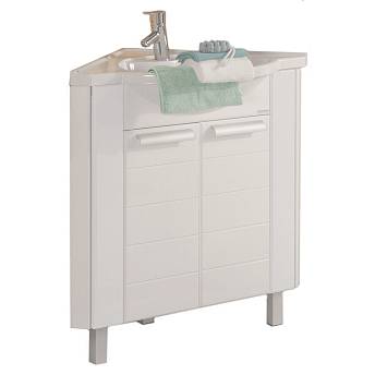 Тумба под умывальник Акватон - АЛЬТАИР 62 угловая белый 1A042601AR010 на регулируемых по высоте ножках комплектуется удобной раковиной из литого мрамора.