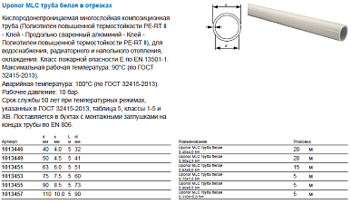 Uponor MLC труба белая 63x6,0 (1013451): основные характеристики