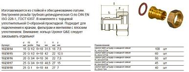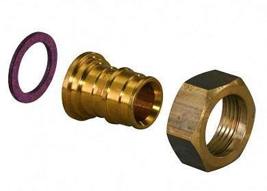 1023015 Uponor Q&E штуцер с накидной гайкой 20-G1/2“НГ Изготавливается из стойкой к обесцинкованию латуни. Внутренняя резьба трубная цилиндрическая G по DIN EN ISO 228-1, ГОСТ 6357. В комплекте с торцевой уплотнительной О-образной прокладкой. Подходит для подключения к кранам, фильтрам и вентилям с плоским уплотнением. Внимание: кольцо Uponor Q&E следует заказывать отдельно!