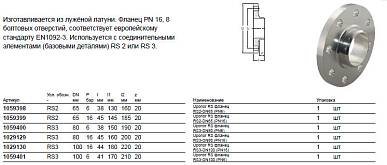 1029129 Uponor RS фланец RS3-DN80 (PN16) Изготавливается из лужёной латуни. Фланец PN 16, 8 болтовых отверстий, соответствует европейскому стандарту EN1092-3. Используется с соединительными элементами (базовыми деталями) RS 2 или RS 3.