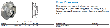 Изготавливается из лужёной латуни. Является переходным элементом с гнезда RS 3 на гнездо RS 2 в базовой детали. В комплект входит 1 фиксирующий хомут RS 2.