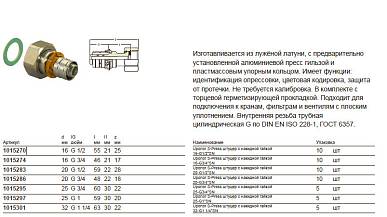 ПодробнееИзготавливается из лужёной латуни, с предварительно установленной алюминиевой пресс гильзой и пластмассовым упорным кольцом. Имеет функции: идентификация опрессовки, цветовая кодировка, защита от протечки. Не требуется калибровка. В комплекте с торцевой герметизирующей прокладкой. Подходит для подключения к кранам, фильтрам и вентилям с плоским уплотнением. Внутренняя резьба трубная цилиндрическая G по DIN EN ISO 228-1, ГОСТ 6357.