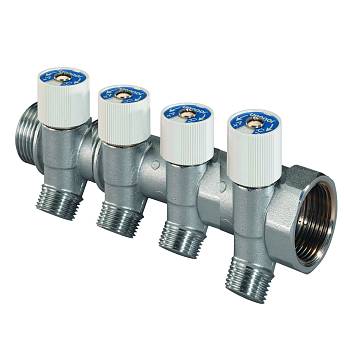 ПодробнееИзготавливается из лужёной латуни, диаметр 1“, с подключениями 1“НР и 1“ВР, выходы с наружной резьбой 1/2“НР оборудованы запорными вентилями. Выходы 1/2“НР предназначены для подключения труб Uponor Uni Pipe Plus посредством зажимных адаптеров Uponor MLC 1/2“ВР (арт. 1058086, 1058088) и труб Uponor PE-Xa 16x2,2 посредством зажимного адаптера арт.1020039. Расстояние между осями выходов 38 мм.