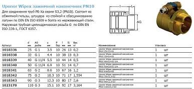 1018338 Uponor Wipex зажимной наконечник PN10 32x4,4-G1 “НР Для соединения труб PE-Xa серии S3,2 (PN10). Состоит из обжимной гильзы, штуцера из стойкой к обесцинкованию латуни по DIN EN ISO 6509 и болта из нержавеющей стали. Наружная трубная цилиндрическая резьба G по DIN EN ISO 228-1, ГОСТ 6357.