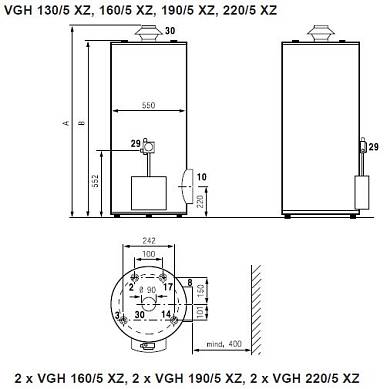 Водонагреватель газовый накопительный Vaillant atmoSTOR VGH 220/5 XZU H R1 является стационарным бойлером для замкнутой, выдерживающей высокое давление, системы с встроенной газовой инжекционной горелкой для природного и сжиженного газа, может использоваться в сочетании с напольными газовыми котлами для обеспечения отопления и приготовления горячей воды.