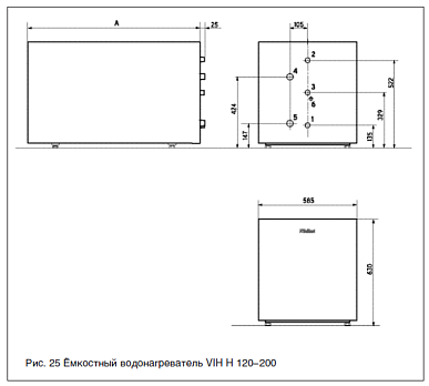 • Конструктивное исполнение позволяет устанавливать сверху на водонагреватель котлы типов VK до типоразмера 264/8 Е, 414/1-5 или котлы типа VKO до типоразмера VKO 248 - на VIH H 120, до типоразмера VKO 408 - на VIH H 150 и до типоразмера VKO 568 - на VIH H 200, что позволяет сэкономить место (при этом следует обратить внимание на то, чтобы установленная мощность горелки не превышала мощности водонагревателя в проточном режиме).