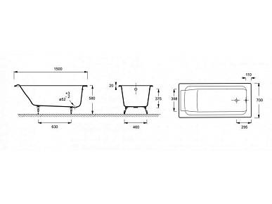 Ванна чугунная без ручек 150x70 Jacob Delafon Parallel E2946-00