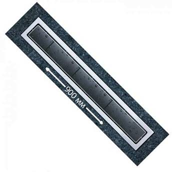 Дизайн-решетка для душевого лотка. Материал: металл. Длинна: 900 мм. Поверхность: матовый хром. Возможность укладки плитки сверху на лоток, в соответствии с дизайном напольного покрытия.