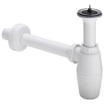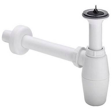 Бутылочный сифон - пластик Комплектация: декоративная розетка Ø 50 мм, верхняя розетка из нержавеющей стали, пробка