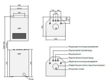 • Для удобства монтажа все подключения расположены в верхней части водонагревателя.