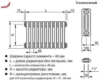 Zehnder 3050 радиатор 16 секций RAL9016: основные характеристики